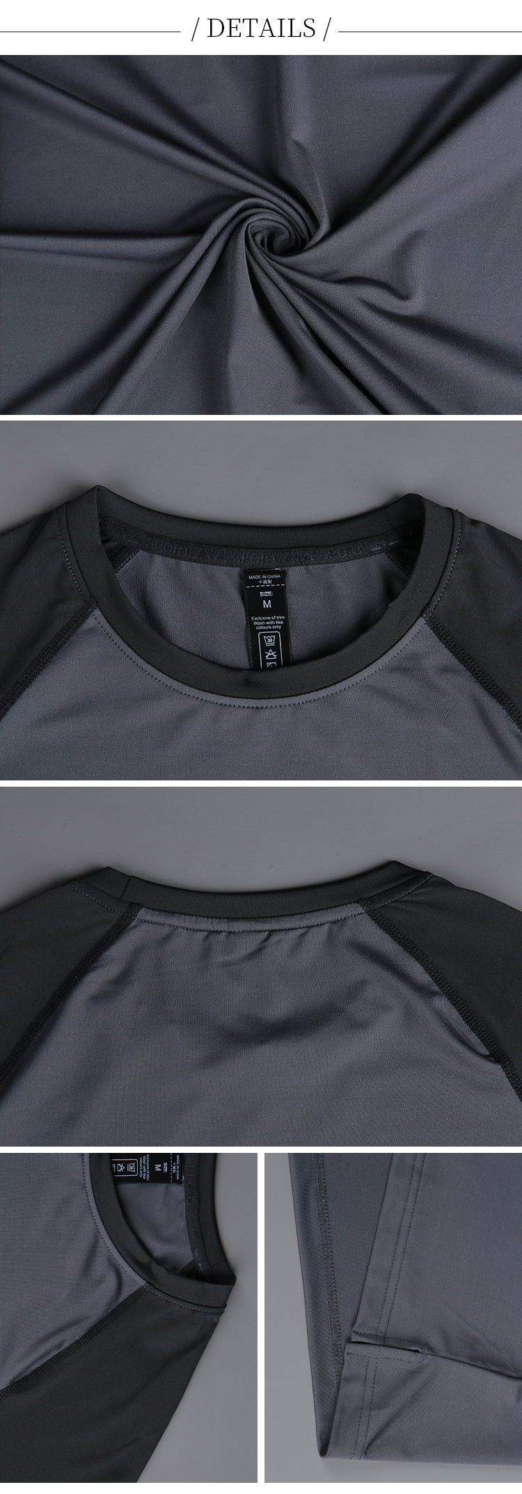 100% polyester, light and breathable material that removes the sweat away from the body keeping it cool and dry.