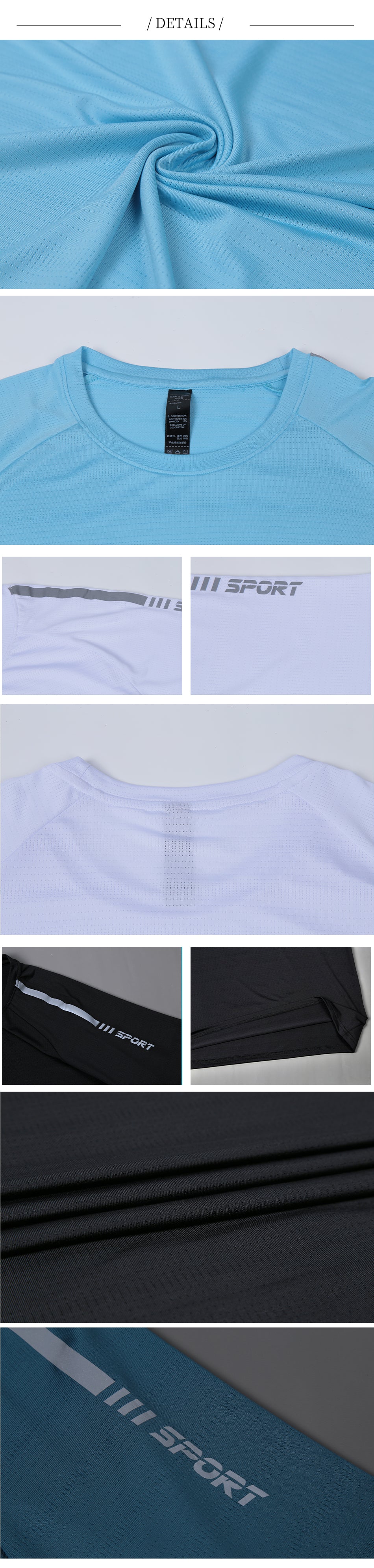 100% polyester, light and breathable material that removes the sweat away from the body keeping it cool and dry.